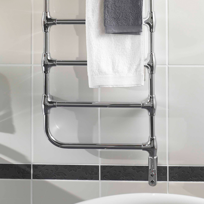 Grzejnik Zehnder Nobis, dzięki wysokiej klasy, chromowanym rurom zapewnia niebanalny wygląd każdej łazience. Duża odległość między rurkami stanowi połączenie ciekawego charakteru z funkcjonalnością. Pozwala to na ogrzanie wielu ręczników równocześnie.